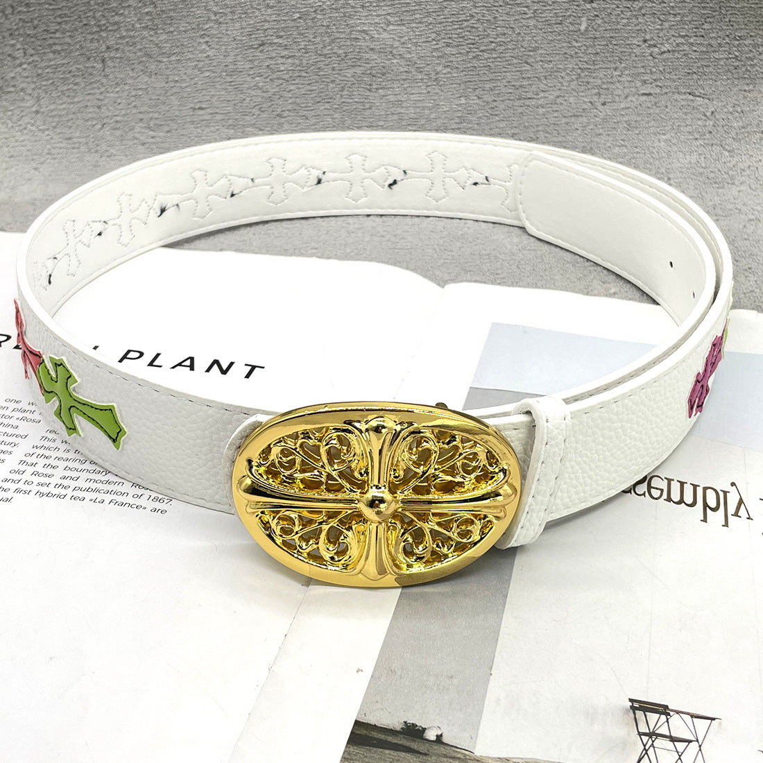 • 15-colored-cross-white-backgrounds-thickened-round-buckle-crowe-ch-sacred-sword-heart-belt